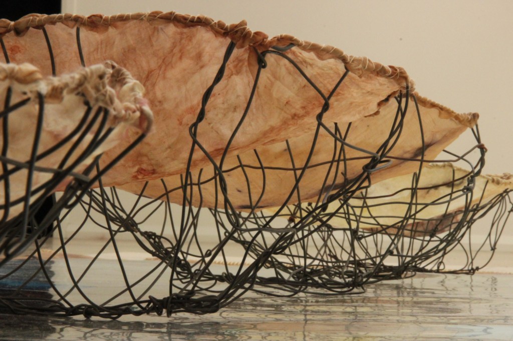 Mixed media installation: wire, silk, thread, paper, wool, wood, plastic, steel, insulation
