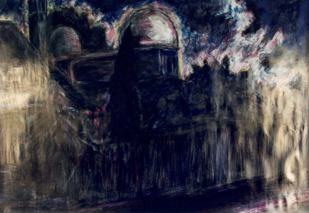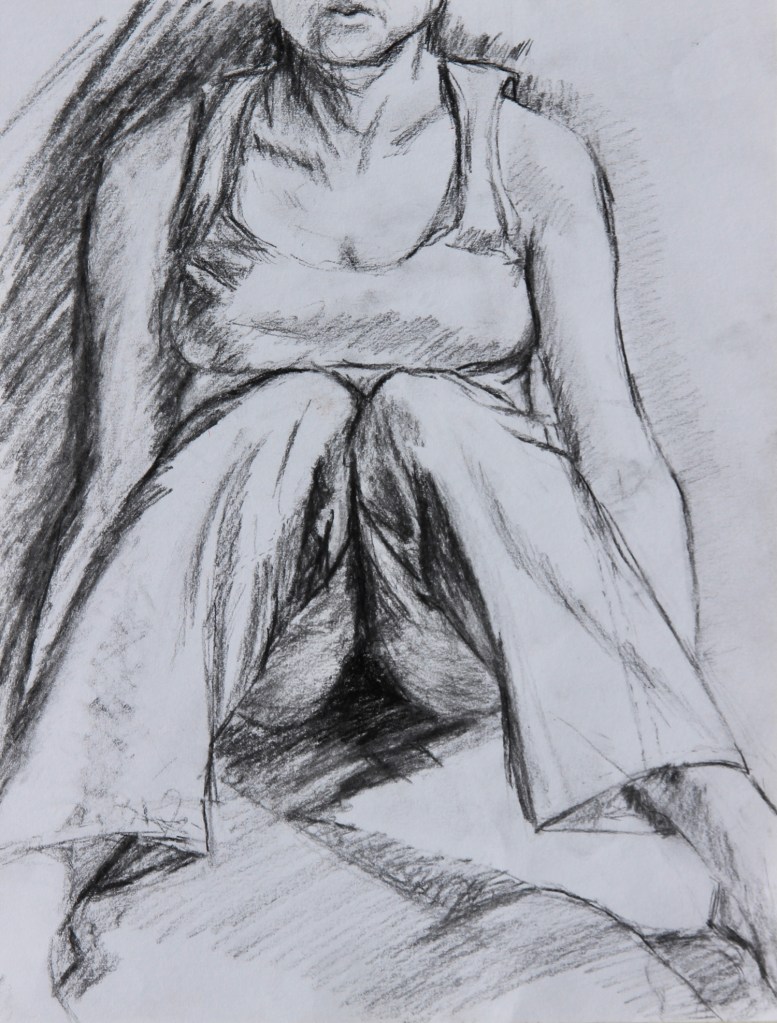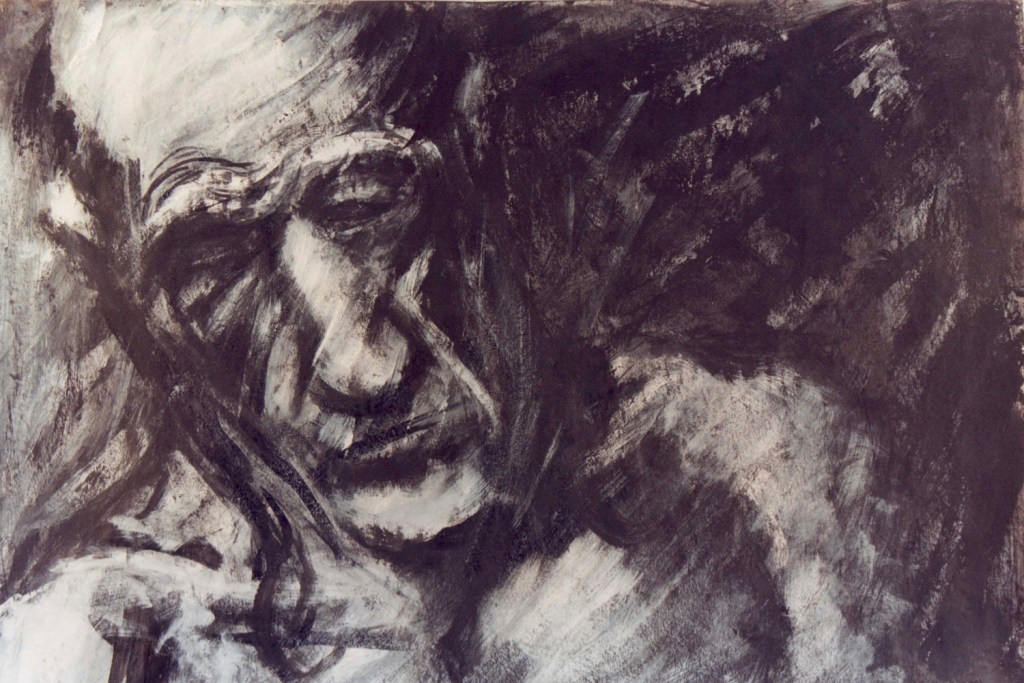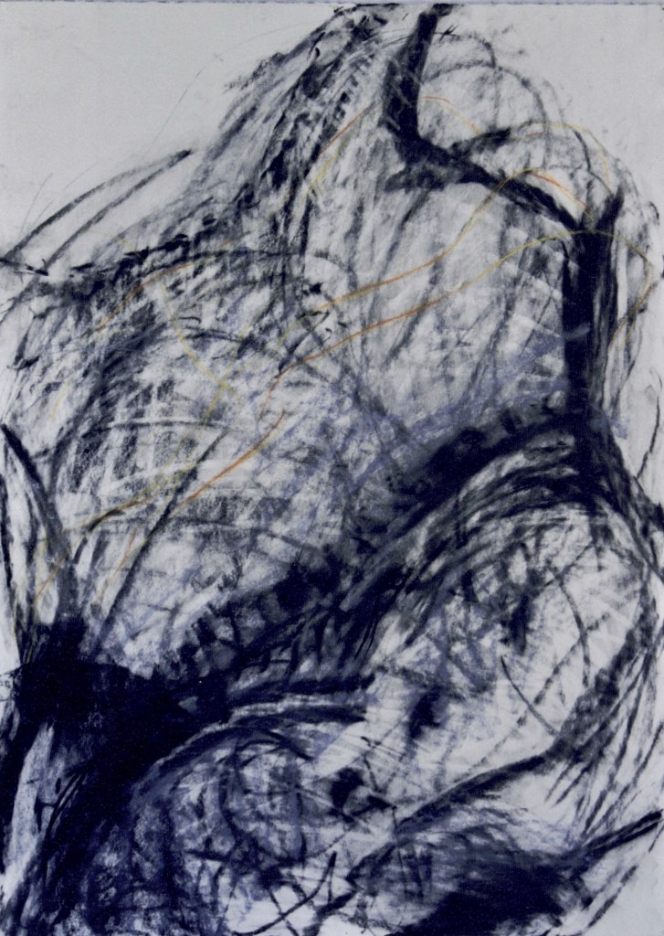 Ink, charcoal, conte, acrylic paint, gesso on paper