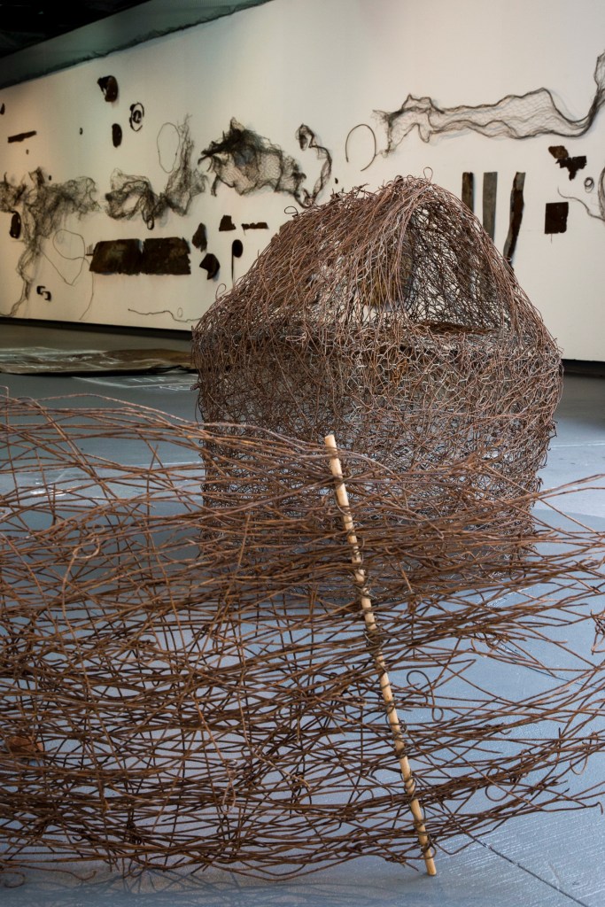 Discarded chicken wire, reclaimed 1930’s hay bale wire, timber and fence wire.